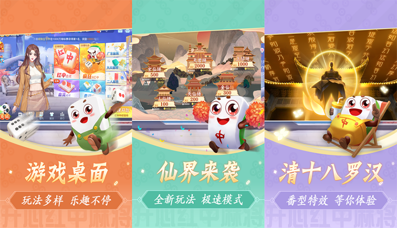 一句话简介:开心红中多玩法,传统麻将再创新,仙界来袭,谁与争锋