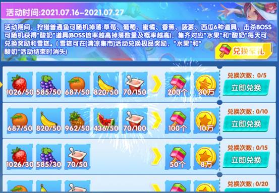 清凉集市,使用雪糕道具,免费兑换海量福利道具奖励